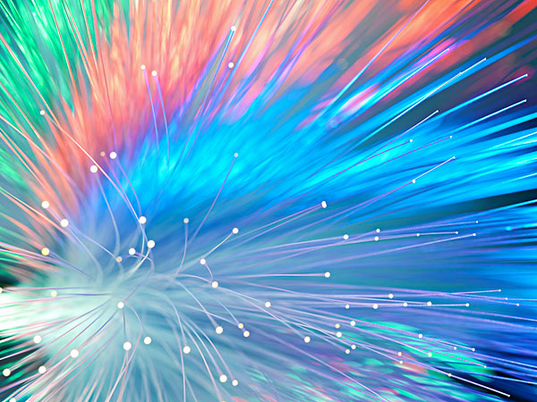 光纖上載的不是電信號,而是光信號,這樣使得信號傳輸距離比在電纜上增加許多,節省了成本,擴大了帶寬。