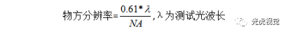 遠心鏡頭中提到的數值孔徑NA指像方數值孔徑,數值孔徑NA值越大,鏡頭分辨率和亮度越佳。數值孔徑NA與物方分辨率的對應關系為: