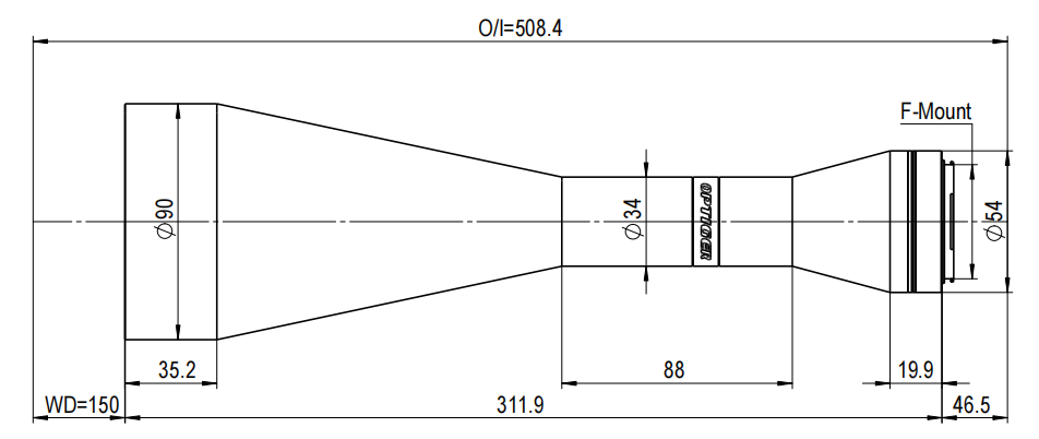 TTL28.5系列標(biāo)準(zhǔn)雙遠(yuǎn)心鏡頭標(biāo)準(zhǔn)F接口,最大兼容APS-C(對(duì)角線28.5mm)靶面工業(yè)相機(jī)。
